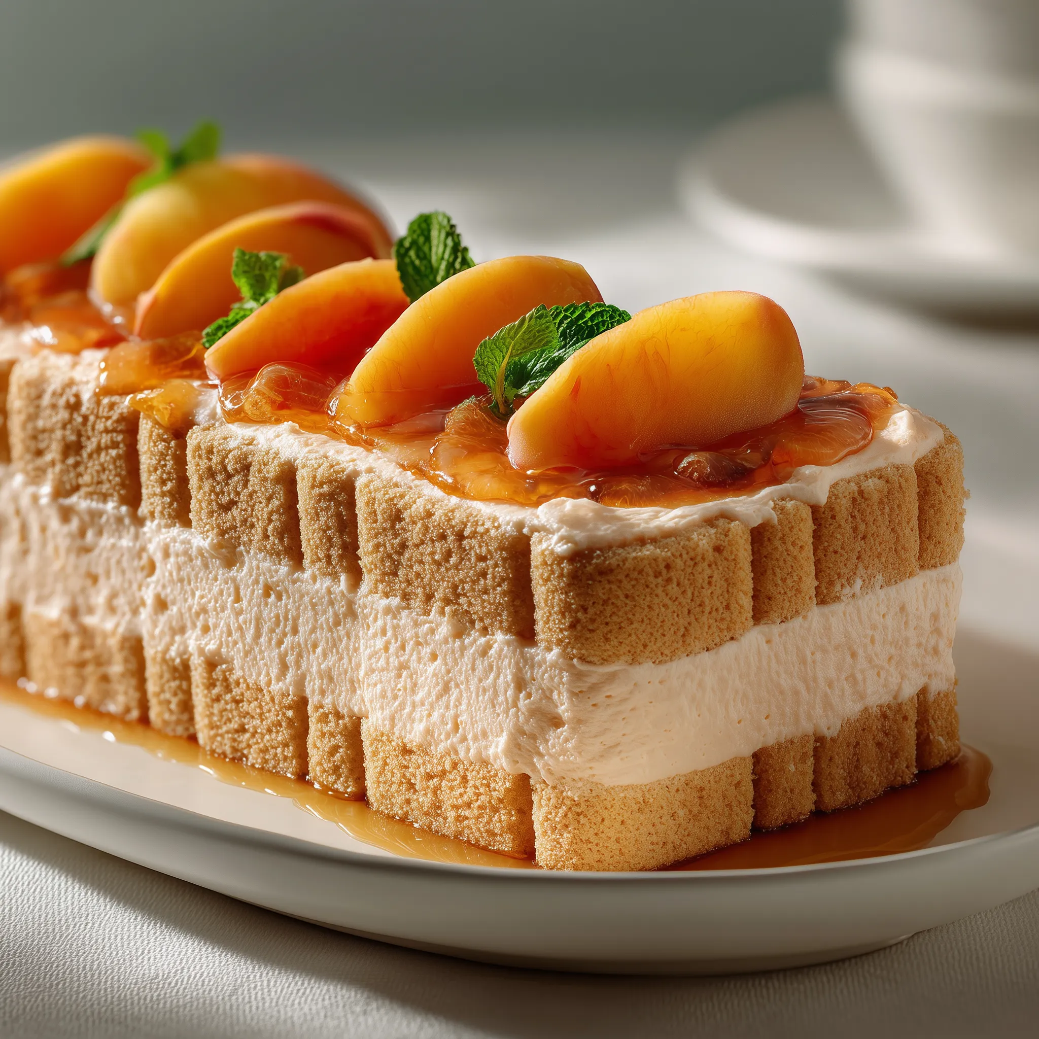 Peach mousse cake with caramel and mint – Asset – Aura