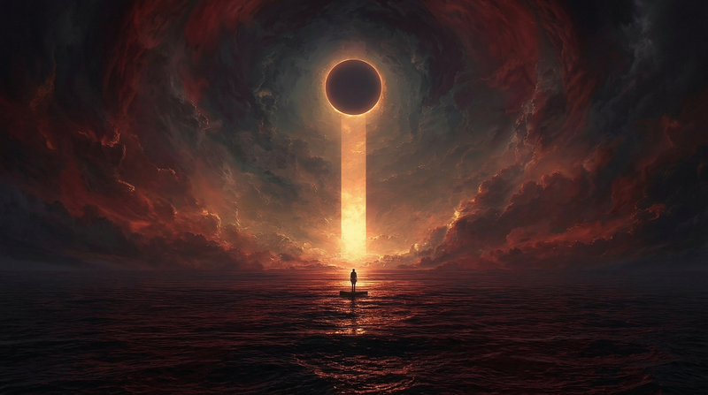 Surreal Eclipse Over a Fiery Ocean