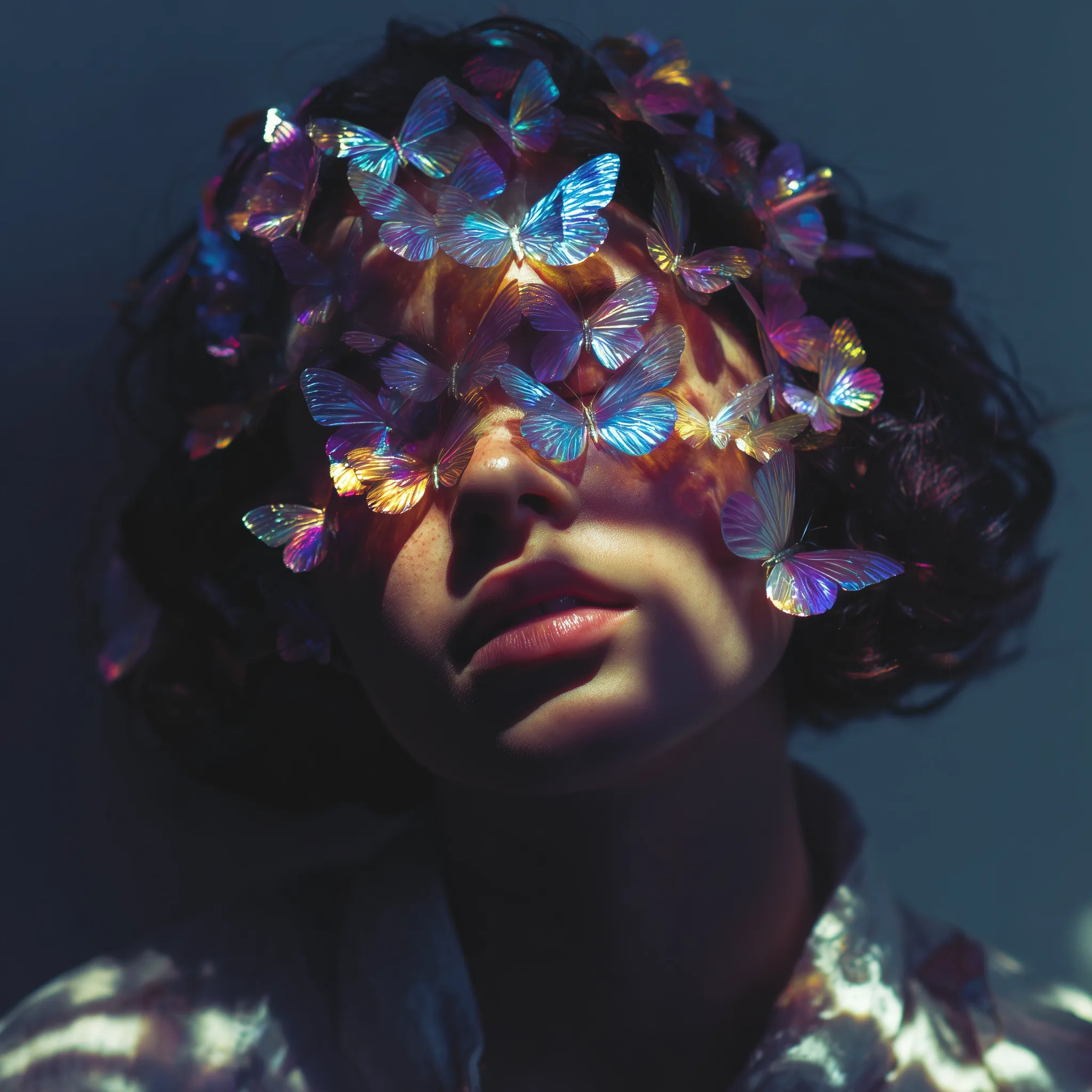 Ethereal Portrait with Iridescent Butterflies