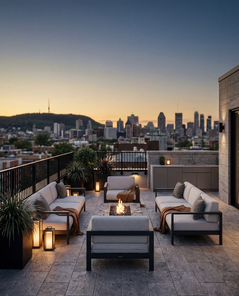Modern Rooftop Lounge at Sunset