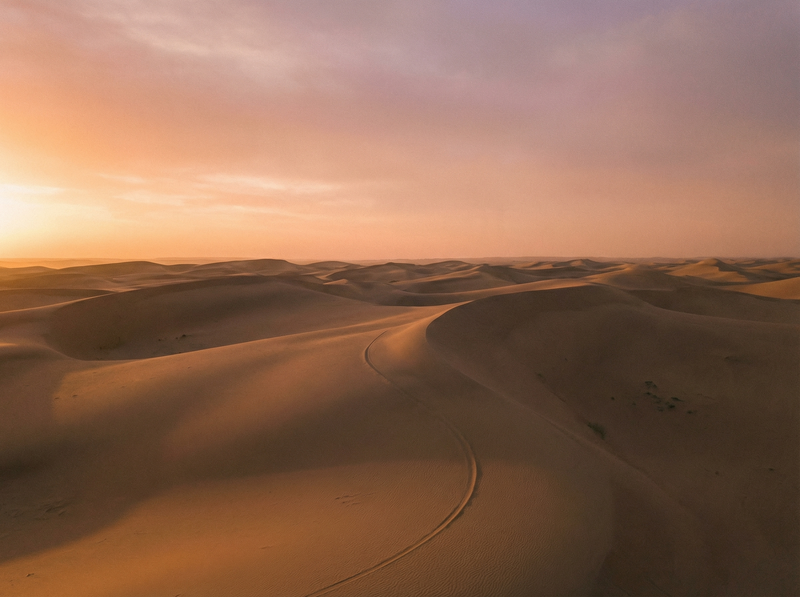Sunset light over rolling desert dunes