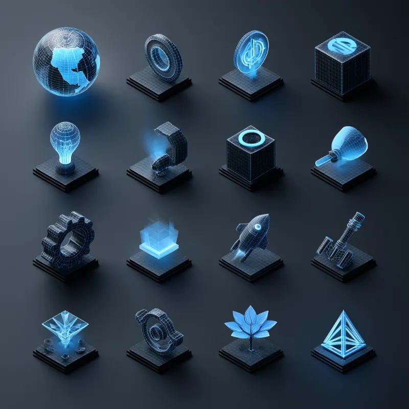 Futuristic Holographic Technology Icons Grid