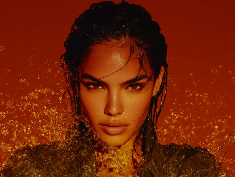 Dramatic wet portrait in golden orange light – Asset – Aura