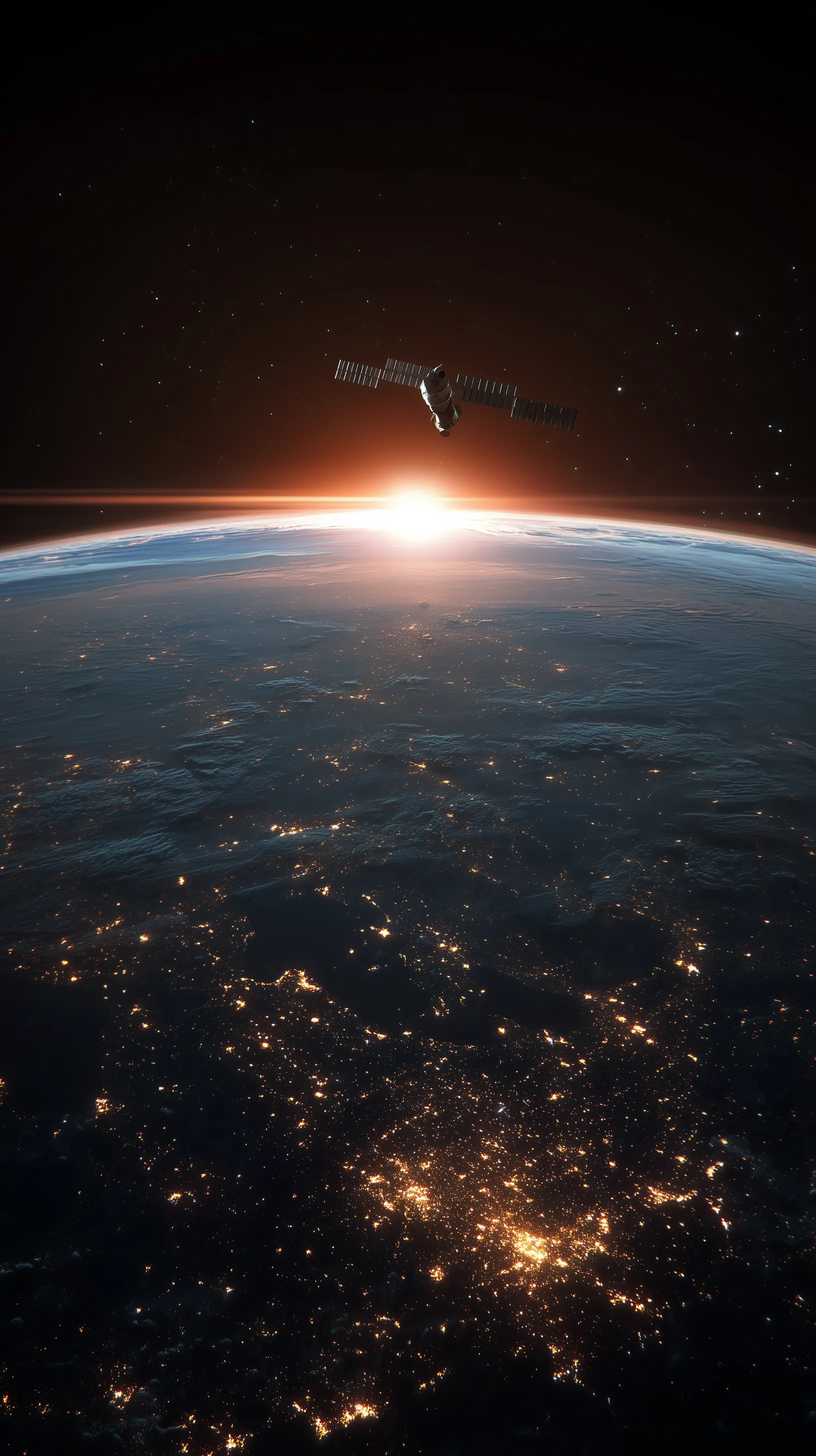 Satellite Above Earth at Sunrise