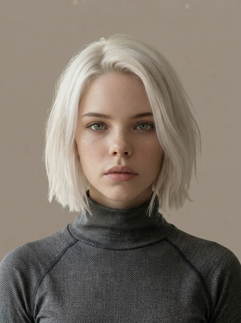 Minimalist Portrait of Woman with White Bob