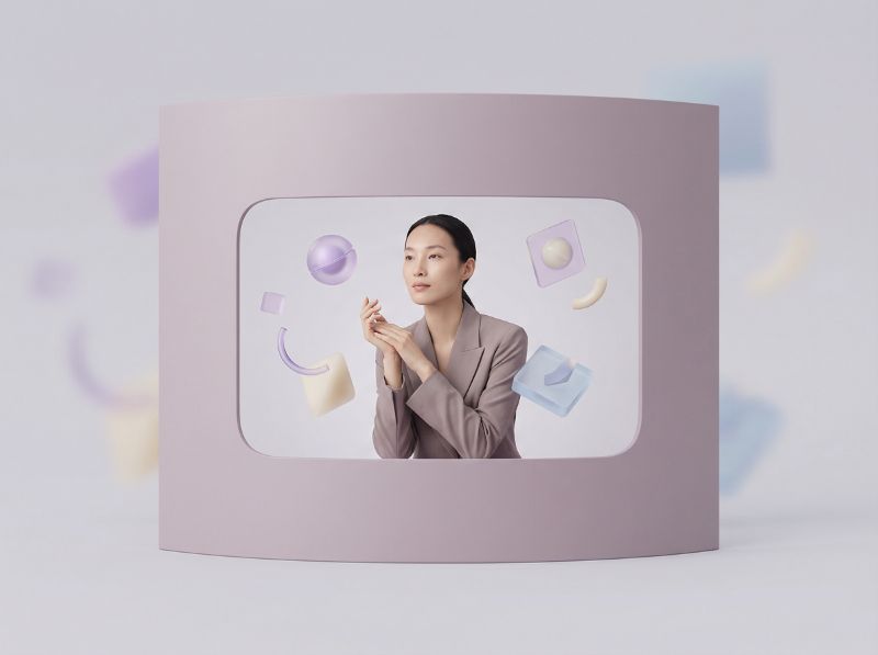 Woman in pastel abstract 3D frame