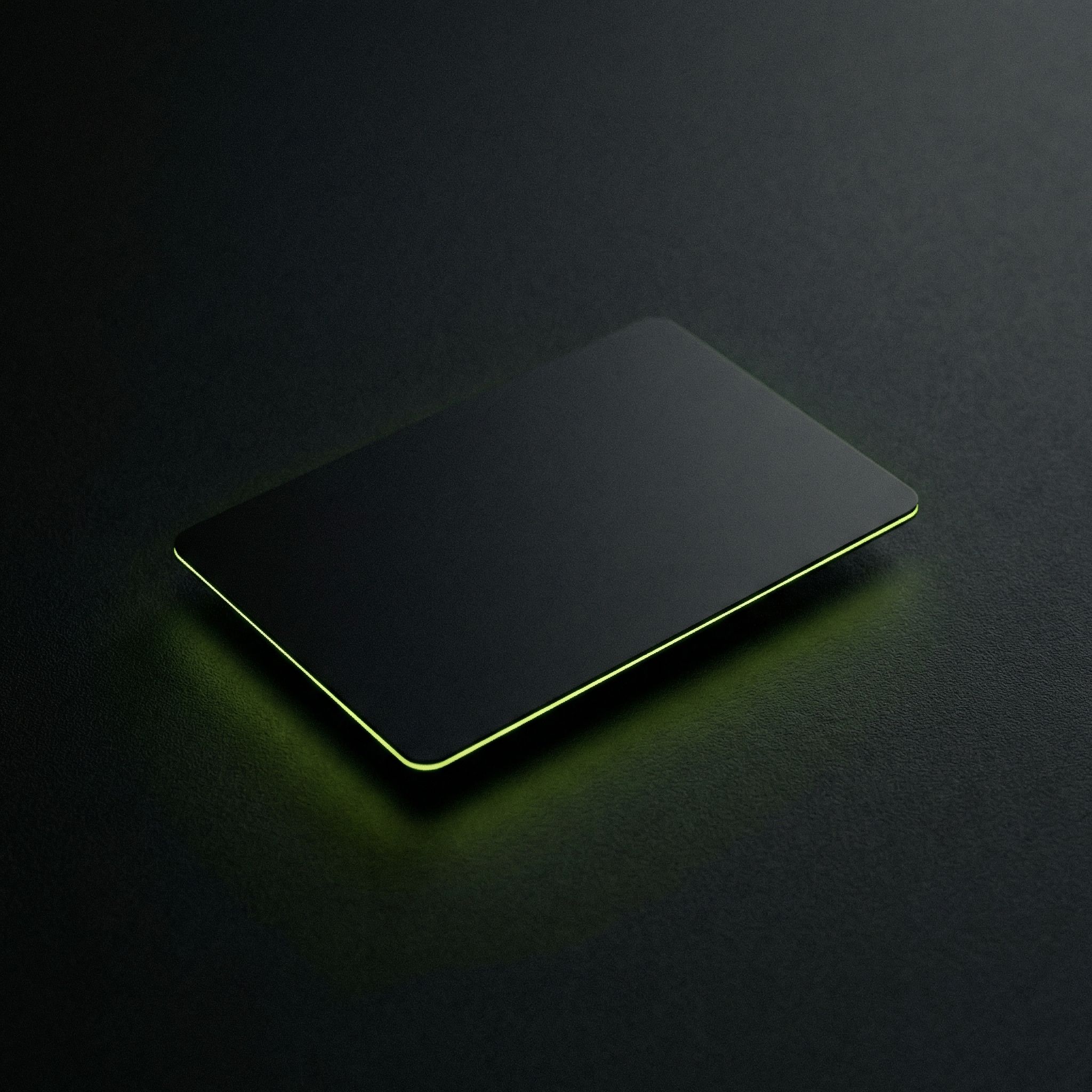 Minimalist black card with neon green edge glow