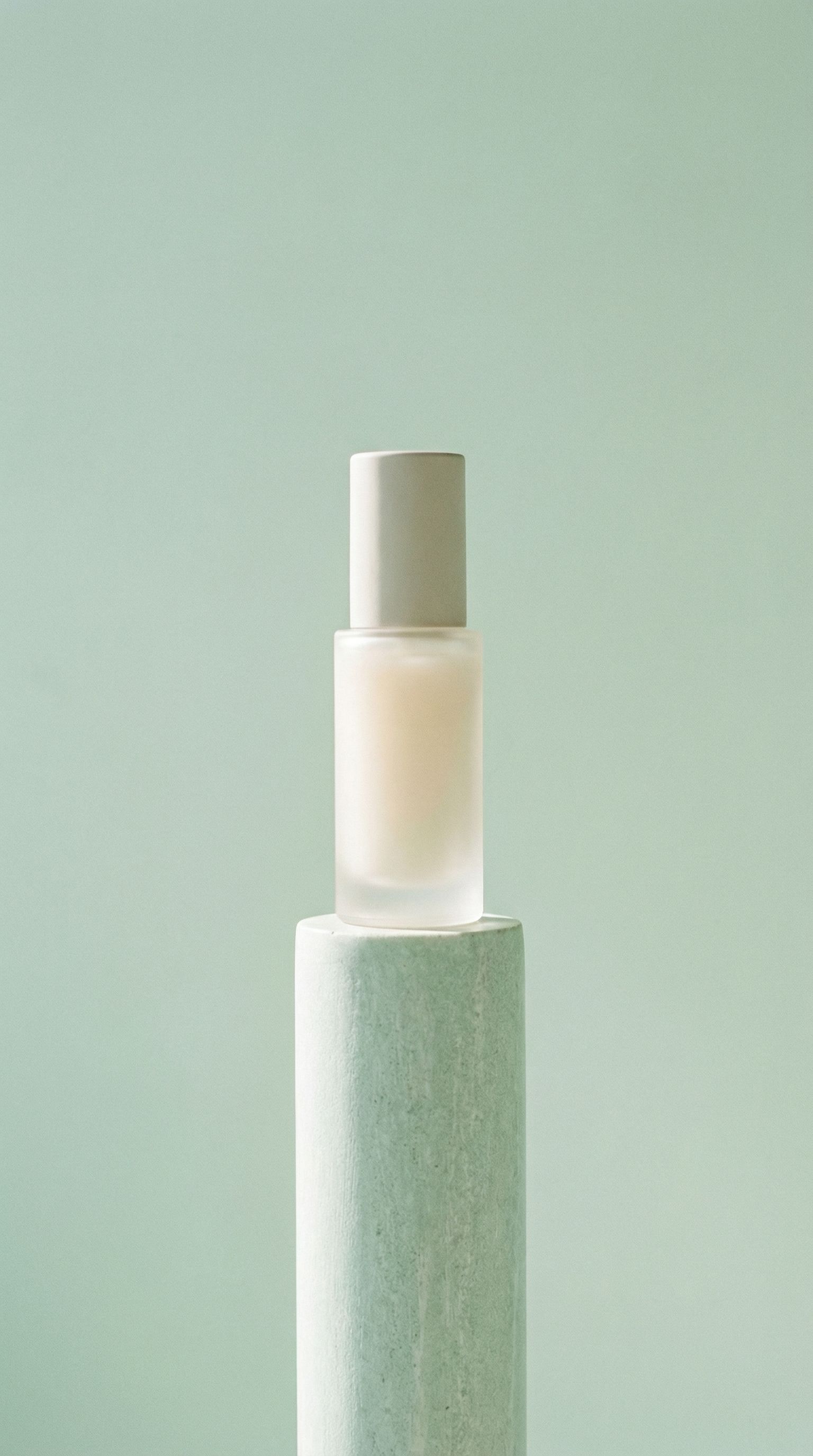 Minimalist cosmetic bottle on pastel pedestal