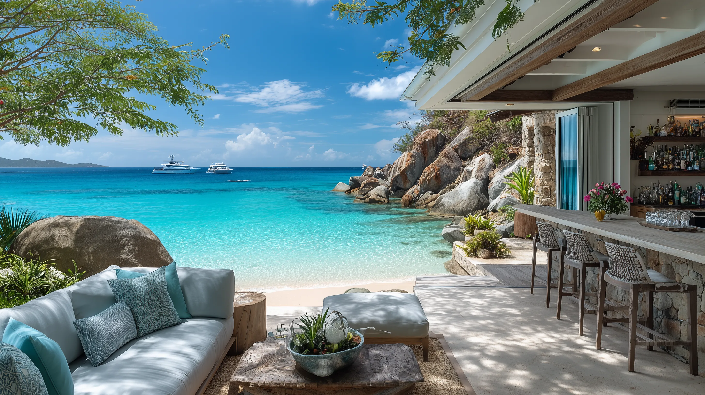 Luxury Beachfront Lounge and Bar with Turquoise Sea