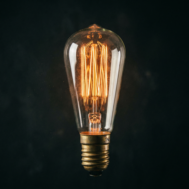 Vintage Edison light bulb glowing on dark