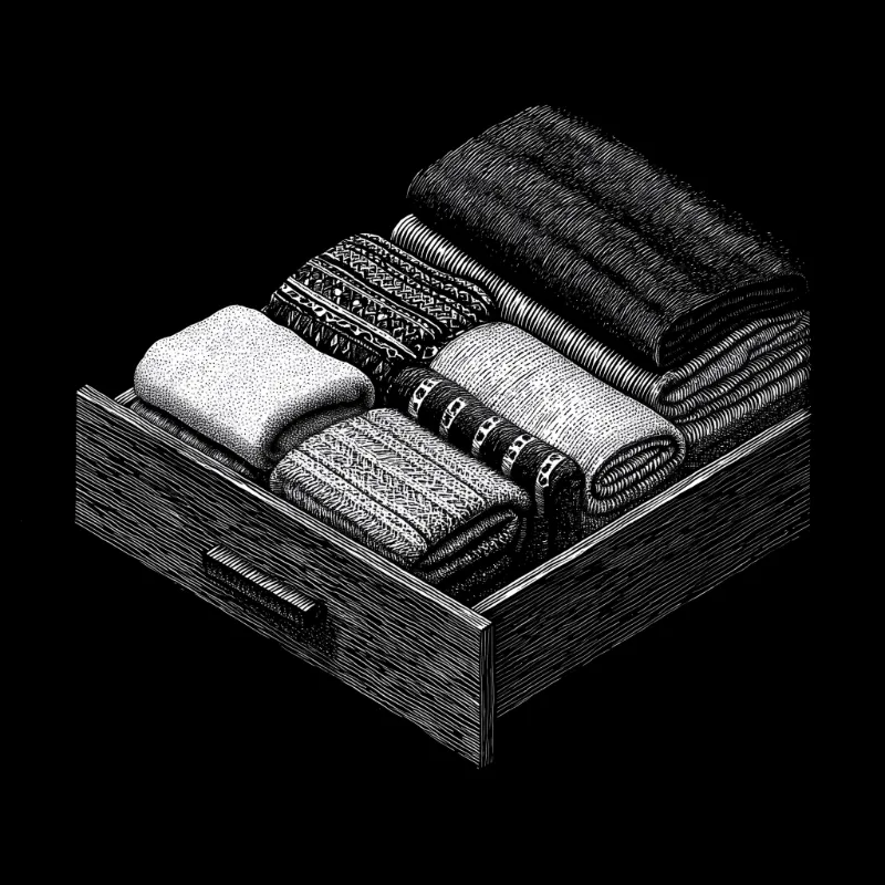 Hand-Drawn Illustration of Neatly Folded Clothes in a Drawer