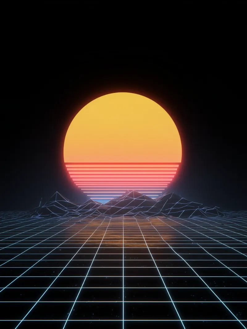 Retro Synthwave Grid Landscape with Sunset