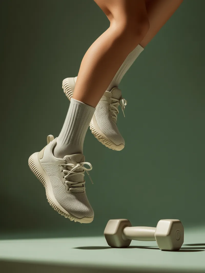 Minimal Fitness Sneakers and Dumbbell