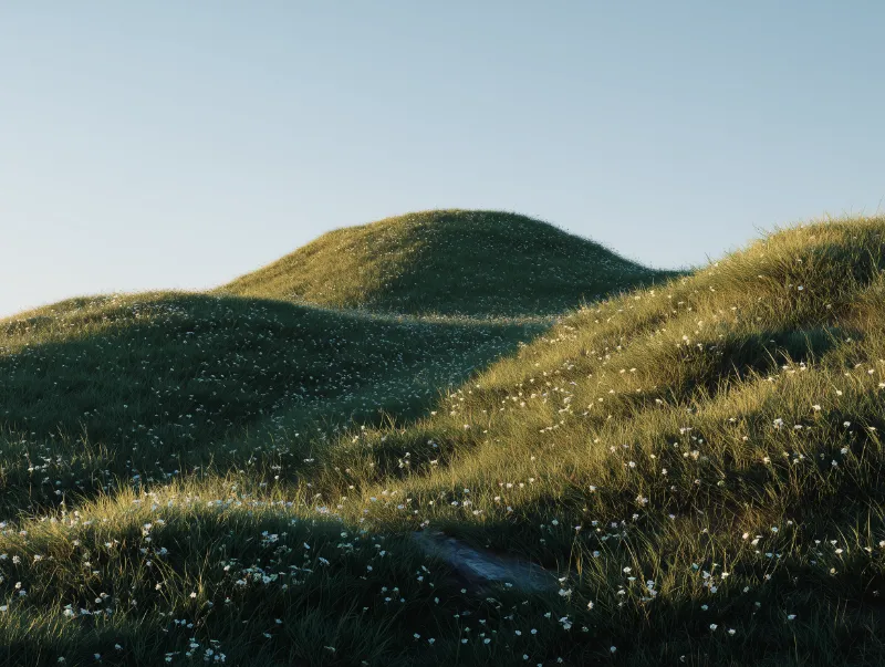 Golden Hour Grassy Hills with Wildflowers