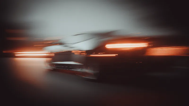 Blurred night shot of speeding sports car