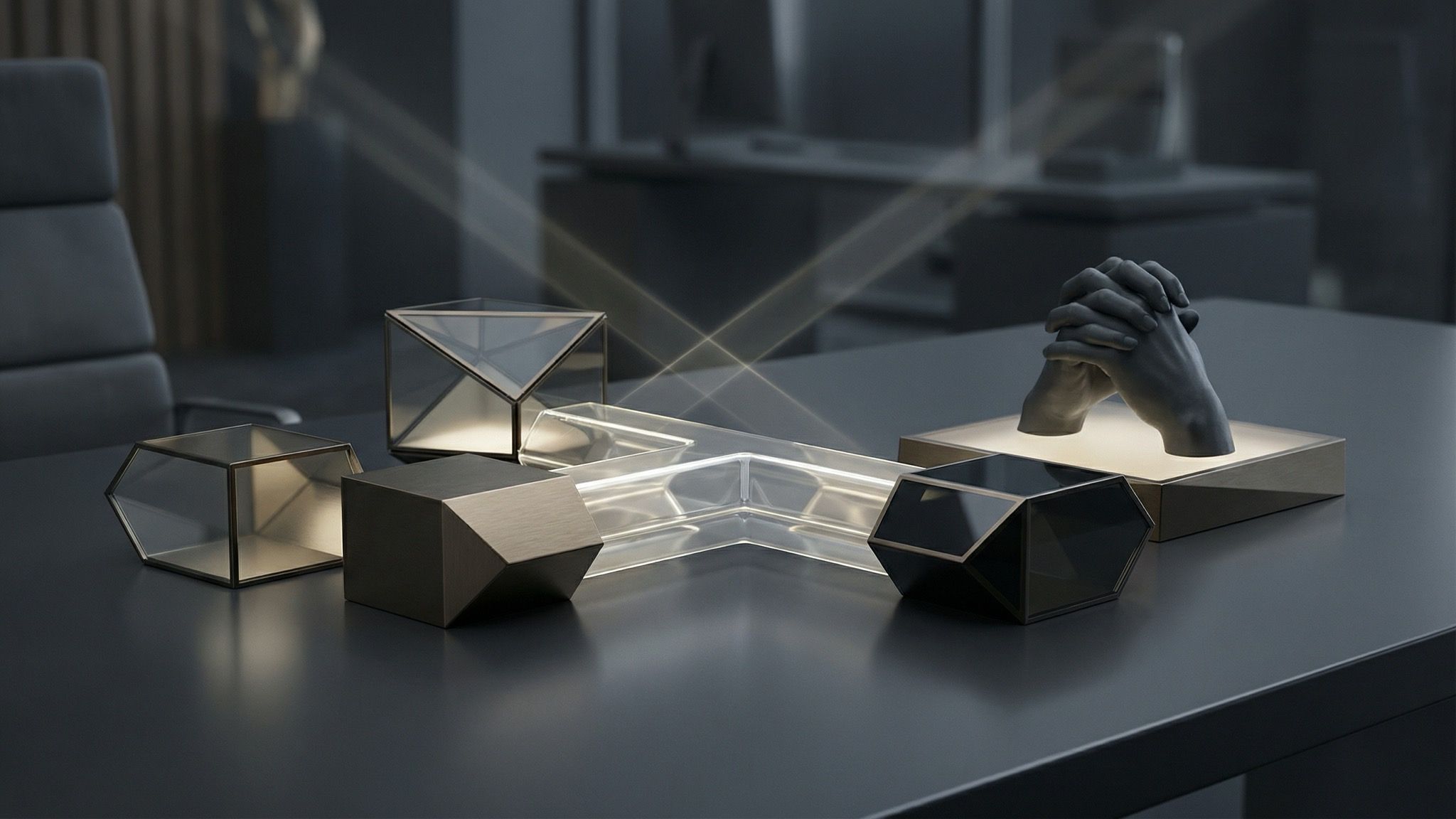 Modern geometric desk sculpture with hands