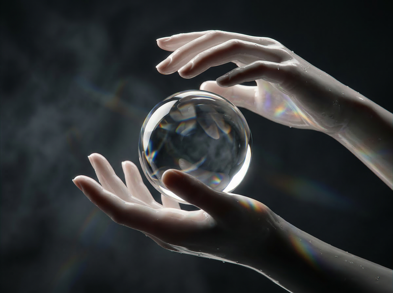 Hands Holding a Glass Sphere in Dramatic Light
