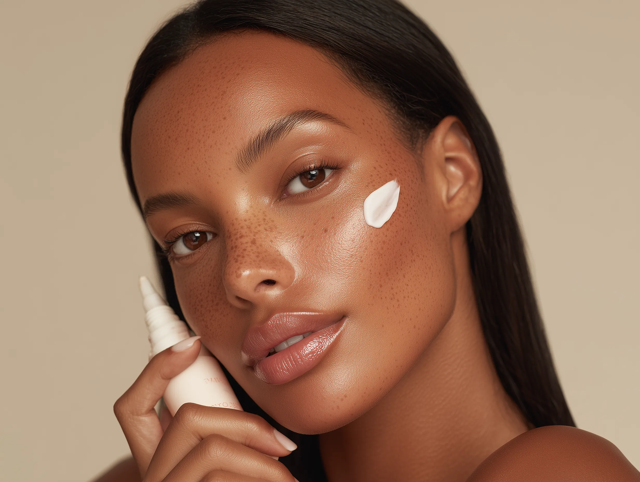 Close-up beauty portrait with face cream