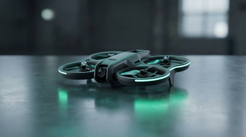 Futuristic quadcopter drone on metallic surface