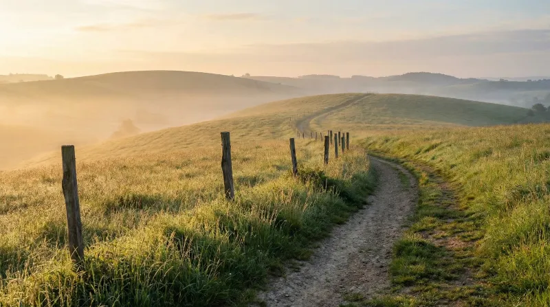 Misty sunrise over rural country path
