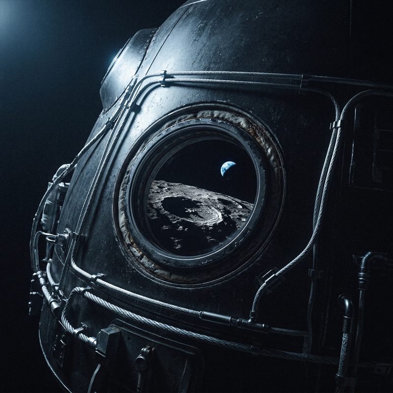 Astronaut Helmet Reflection of Moon and Earth