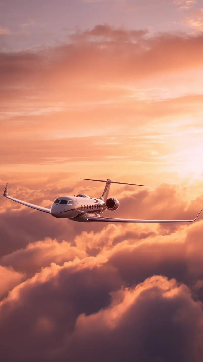 Private jet flying above clouds at sunset – Asset – Aura
