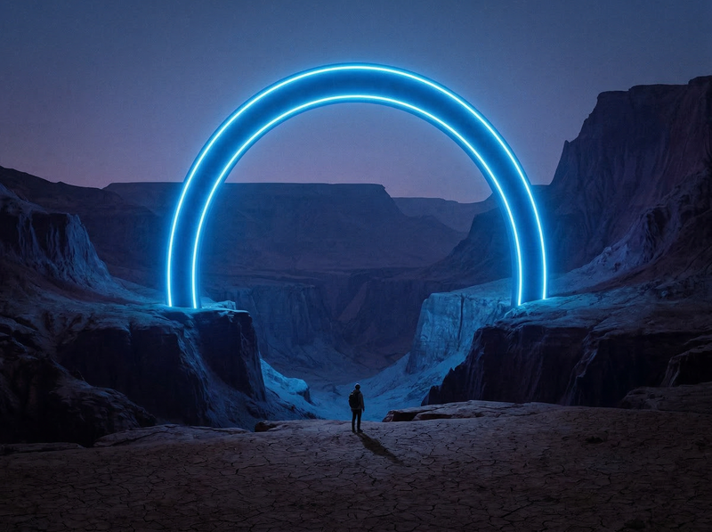 Neon Portal Arch in Desert Canyon at Dusk
