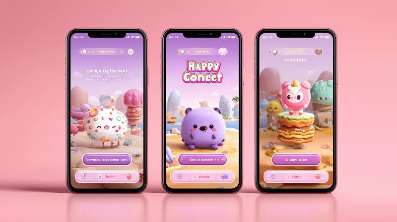 Cute mobile game UI with pastel characters