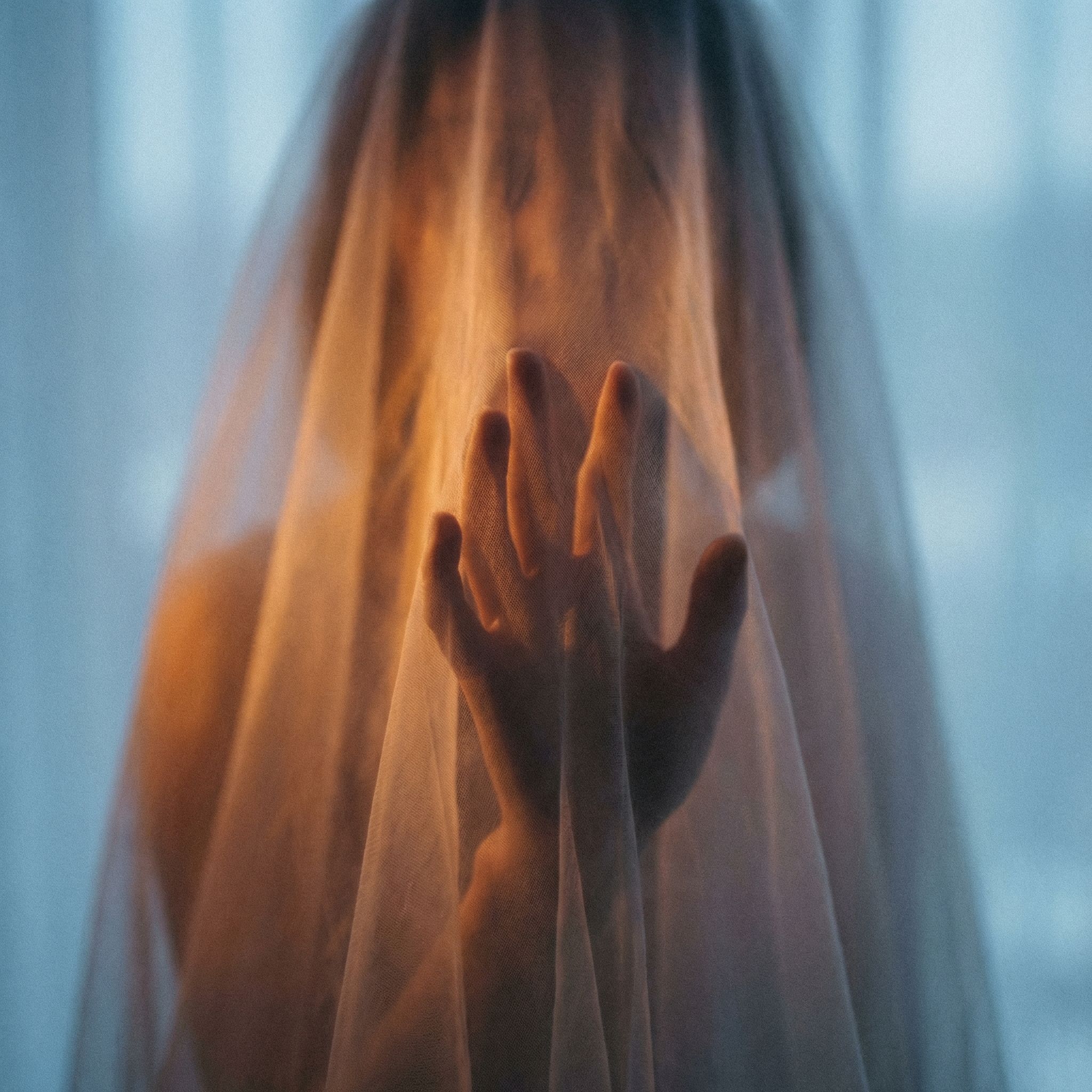 Silhouetted Hand Behind Sheer Veil