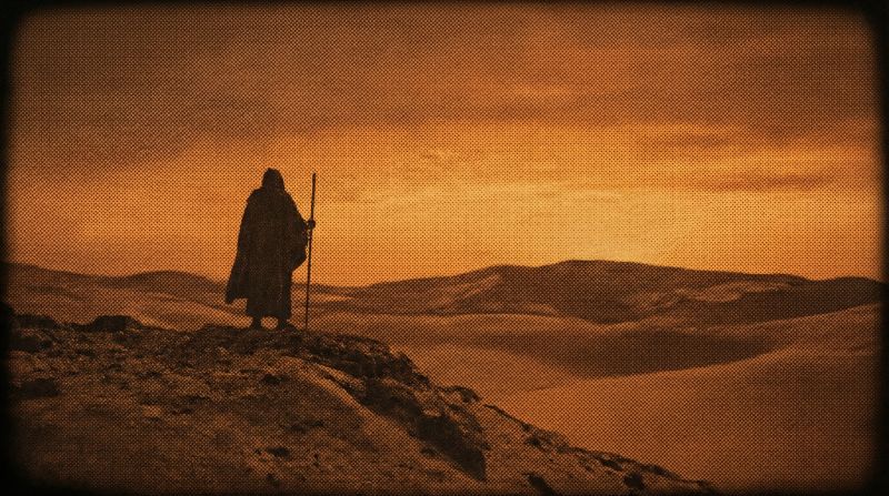 Wanderer Silhouette in Sepia Desert Landscape