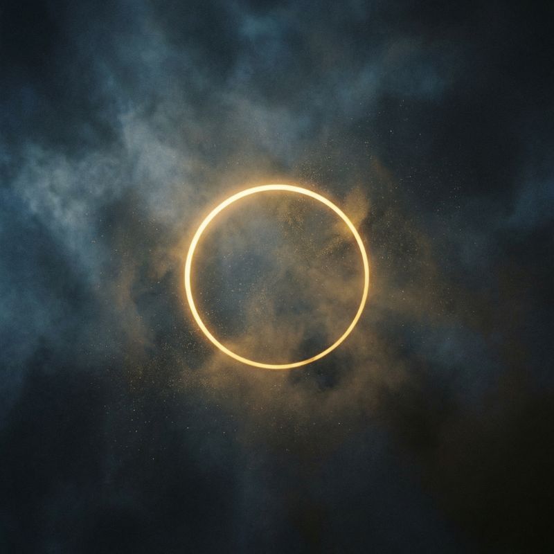 Glowing Golden Ring in Dark Atmospheric Clouds