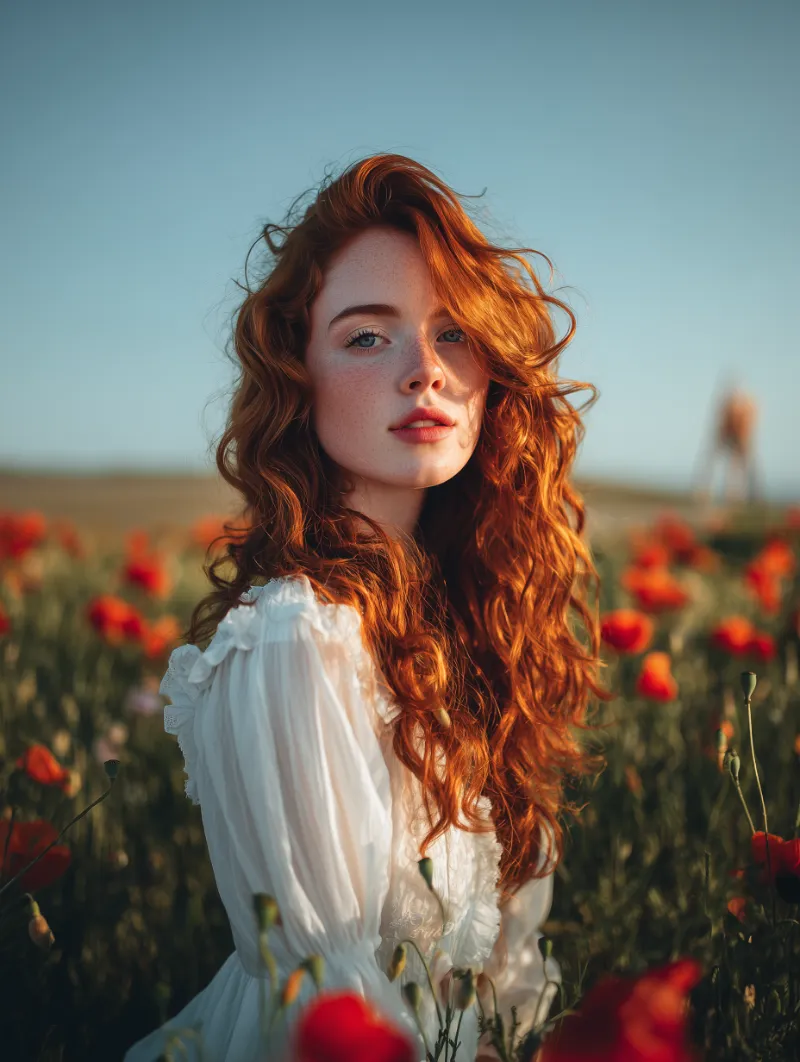 Red-Haired Woman in Poppy Field