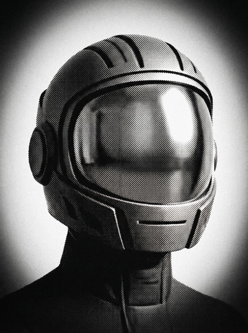 Halftone Portrait of Futuristic Helmet