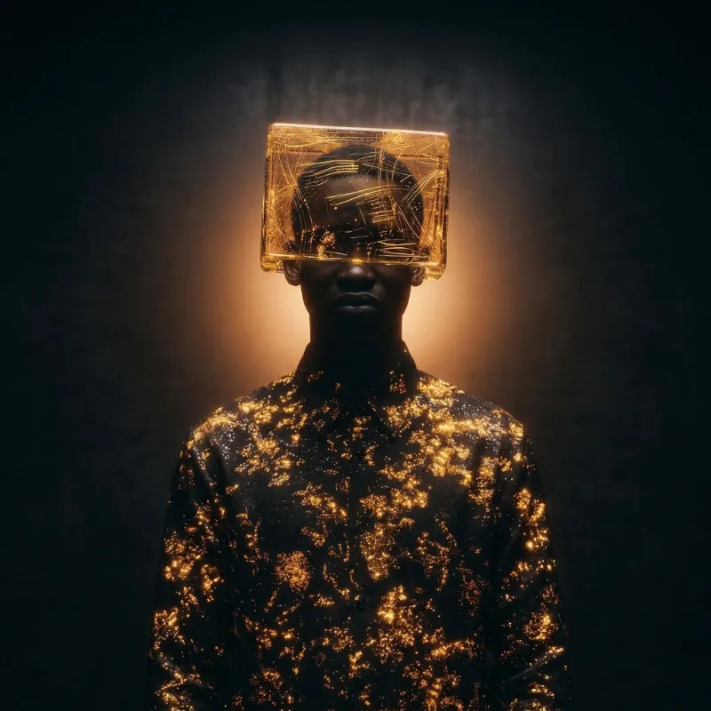 Surreal Portrait with Glowing Glass Visor