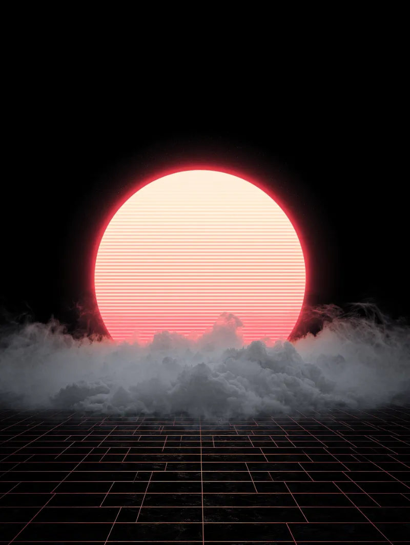 Retro Synthwave Sun with Neon Grid and Clouds