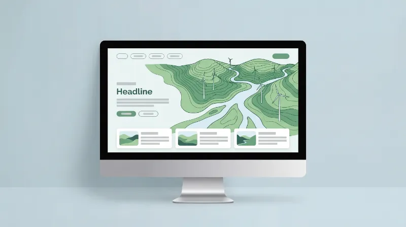 Monitor with green energy landscape website | Stock Image & Design Asset โ Aura