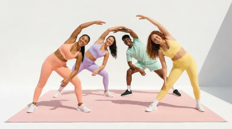 Group fitness stretching on pastel mat