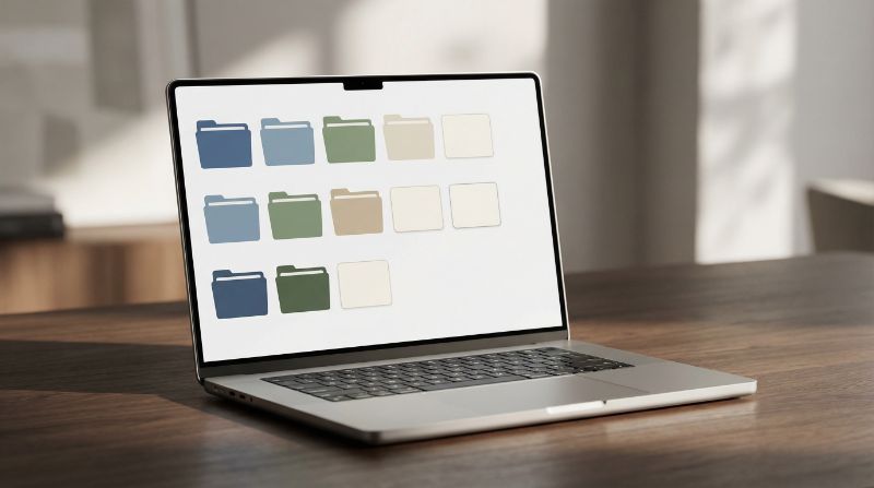 Laptop with colorful folder icons on screen