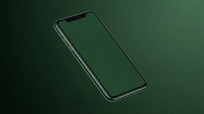 Green smartphone on dark green background