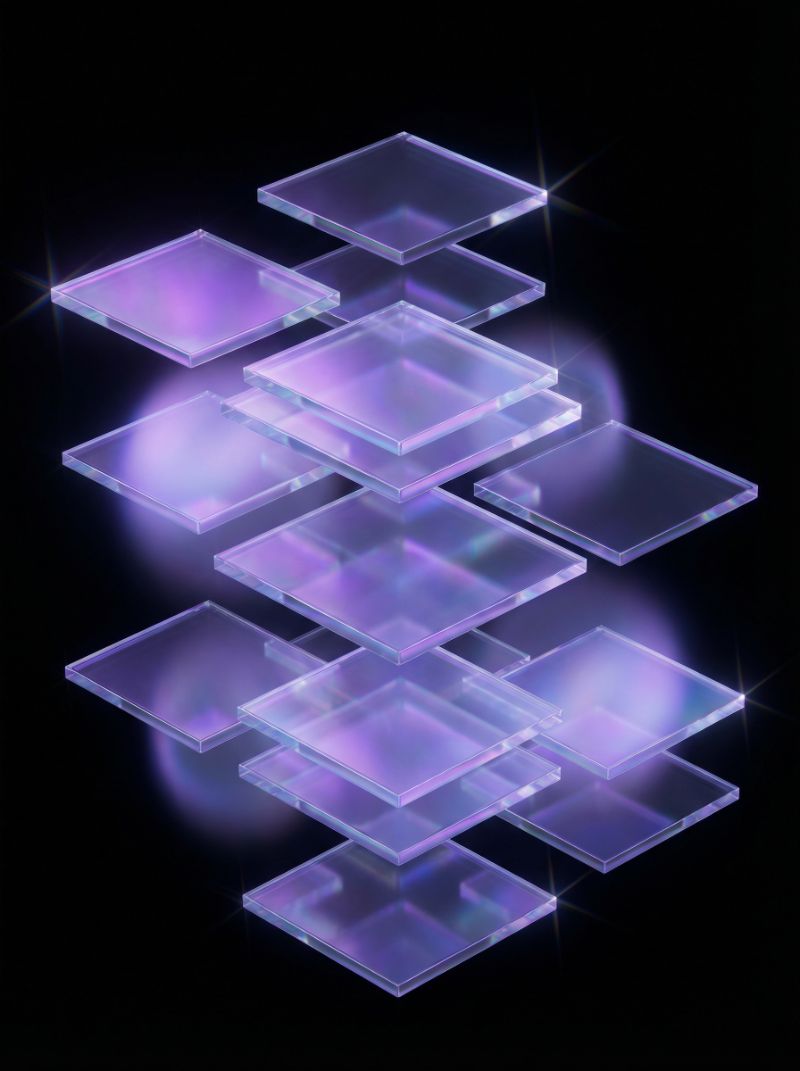 Floating iridescent glass tiles on black | Stock Image & Design Asset โ Aura