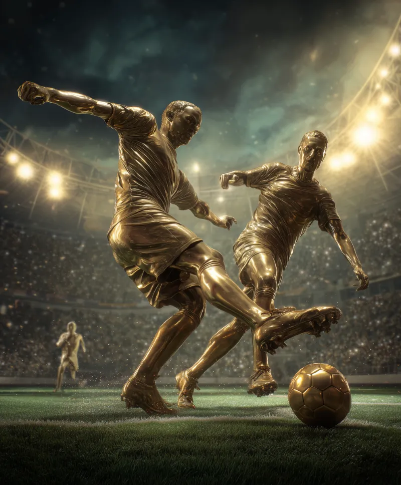 Golden Soccer Statues in Action