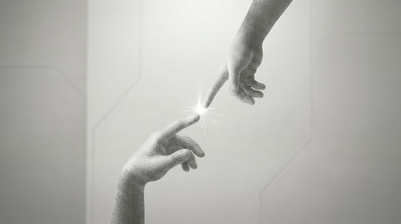 Fingertips Touching with Spark of Light