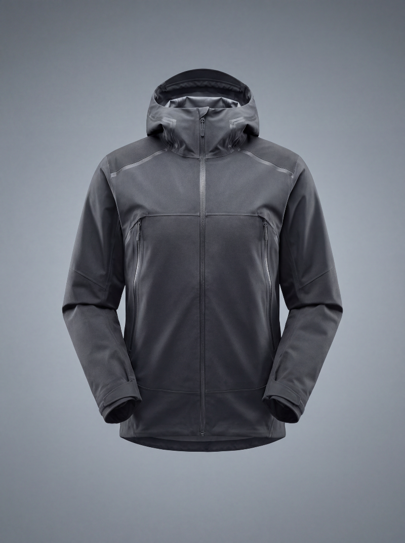 Black technical hooded softshell jacket