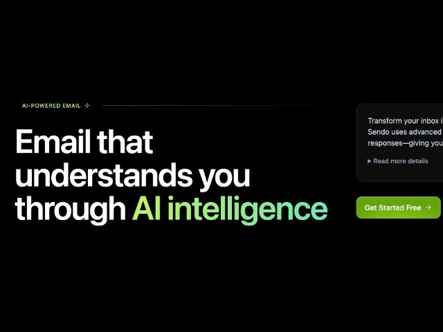 Responsive landing-page hero showcasing an AI-powered email product. Includes gradient badge, bold headline, expandable details, and two call-to-action buttons—one with custom floating-points animation. Styled with Tailwind CSS and custom keyframes for modern marketing pages.