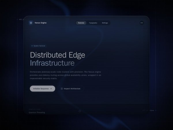 Full-screen dark hero section showcasing a futuristic infrastructure platform UI with Tailwind CSS styling, WebGL animated mesh background, GSAP entrance effects, floating status callouts, and CTA buttons. Ideal for SaaS, cloud, or tech landing pages.