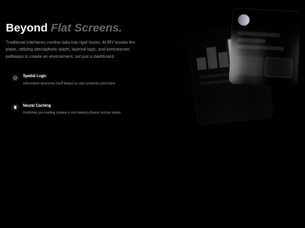 A two-column Tailwind CSS feature section with narrative text, glassmorphism highlight cards, and animated floating dashboard mockups. Ideal for showcasing product innovation, spatial UI concepts, or futuristic SaaS experiences.