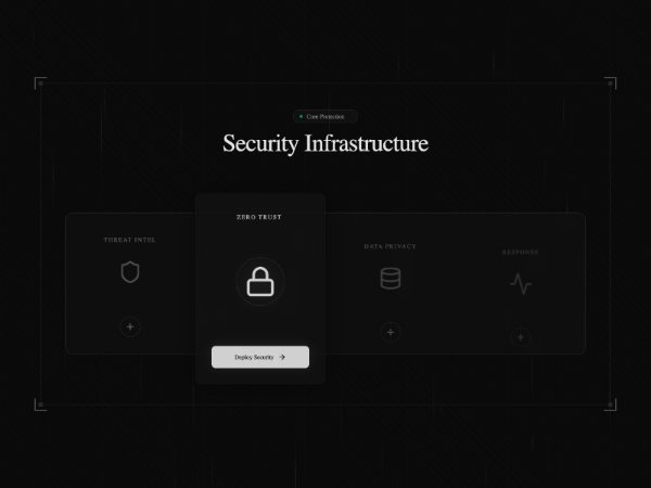 A dark, full-width cybersecurity feature section with a framed grid layout, animated canvas background, GSAP reveal effects, and interactive security cards. Built with Tailwind CSS for modern landing pages, SaaS, or security product showcases.