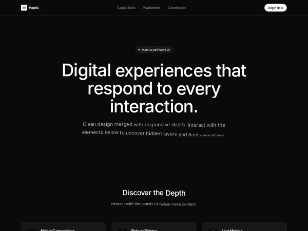 Dark-themed Tailwind feature section with a fixed navbar, animated text reveals, and 3D hover fold-out cards for showcasing product capabilities, privacy, and metrics. Ideal for SaaS landing pages and modern product marketing sites.
