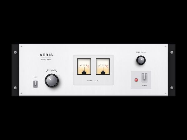 Highly detailed analog-style rack preamp panel with toggle switches, rotary knobs, dual animated VU meters, and power indicator. Built with Tailwind-style utility classes for use as a decorative audio control UI block or hero UI showcase.