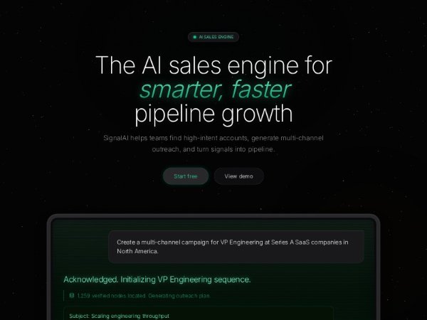 Dark Tailwind CSS hero section for an AI sales platform with CTA buttons, immersive WebGL starfield background, ambient glow effects, and a stylized chat/demo interface. Ideal for SaaS landing pages, AI product showcases, and startup homepages.